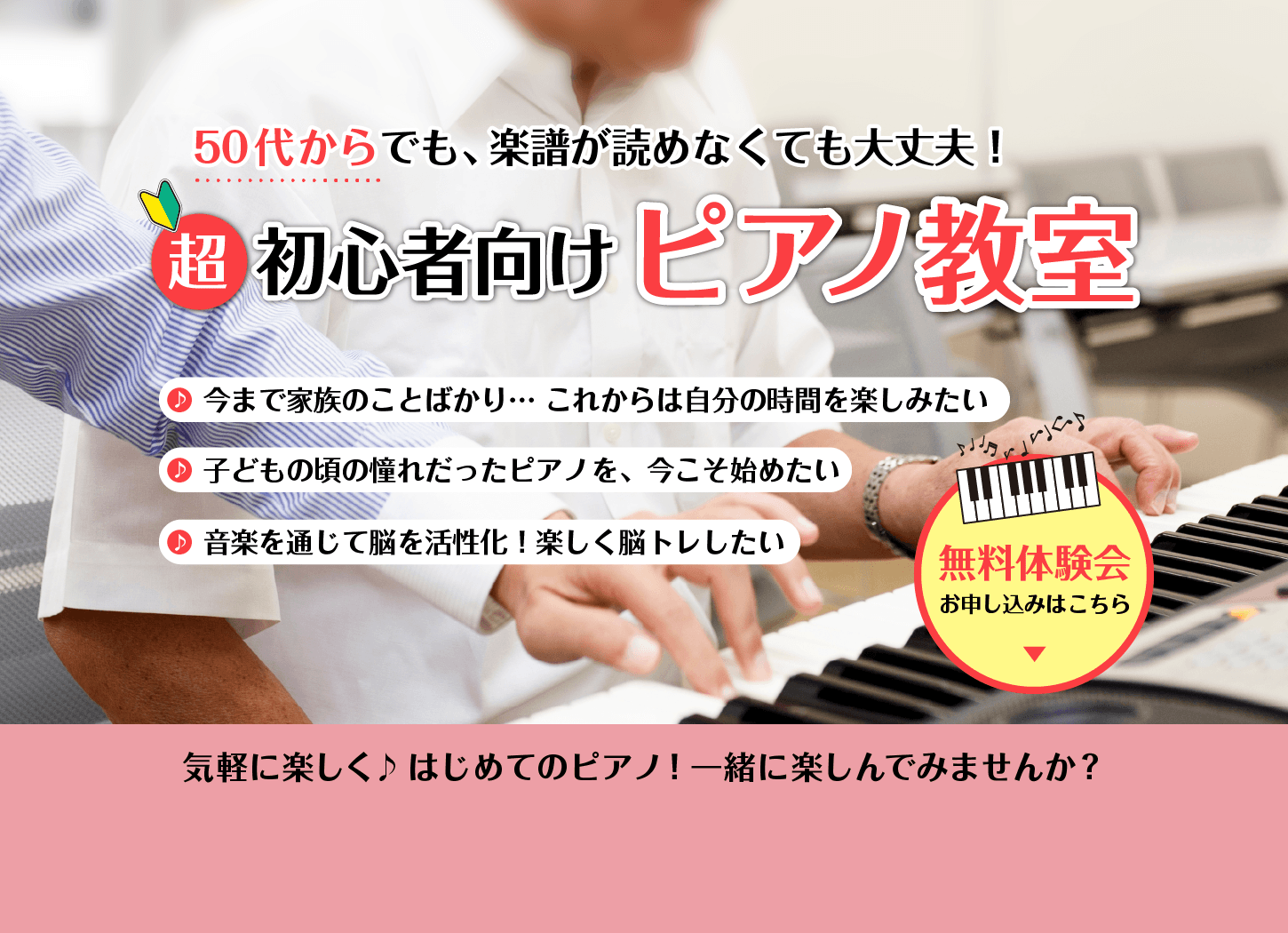 ピアノを弾く楽しさを、一緒に感じてみませんか?60代からでも遅いなんてことはありません。ピアノは、弾けば弾くほど心も体も元気になりますよ♪ ぜひ、一歩踏み出して、音楽のある生活を楽しんでください!