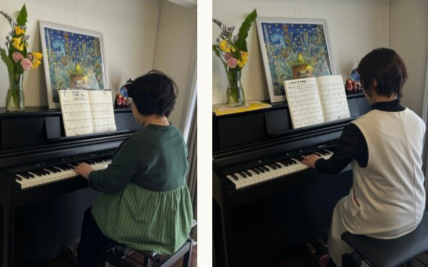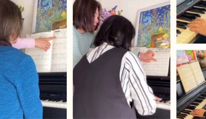 この生徒さんはご入会から間もないにもかかわらず、驚くほどの速さで上達されています。すでに1冊目の教本が終わりに近づき、次の本に進まれました。娘さんが子どもの頃にピアノをされていたそうで、その経験を見たり聞いたりしたことが今に生かされているのかもしれません。教本にはアレンジされた「トルコ行進曲」が含まれていますが、初心者には難しい曲です。それでも毎回の練習の成果でしっかり弾きこなしておられます。「ピアノがとても楽しい」とお話しくださり、その言葉が講師にとって大きな励みになっています。